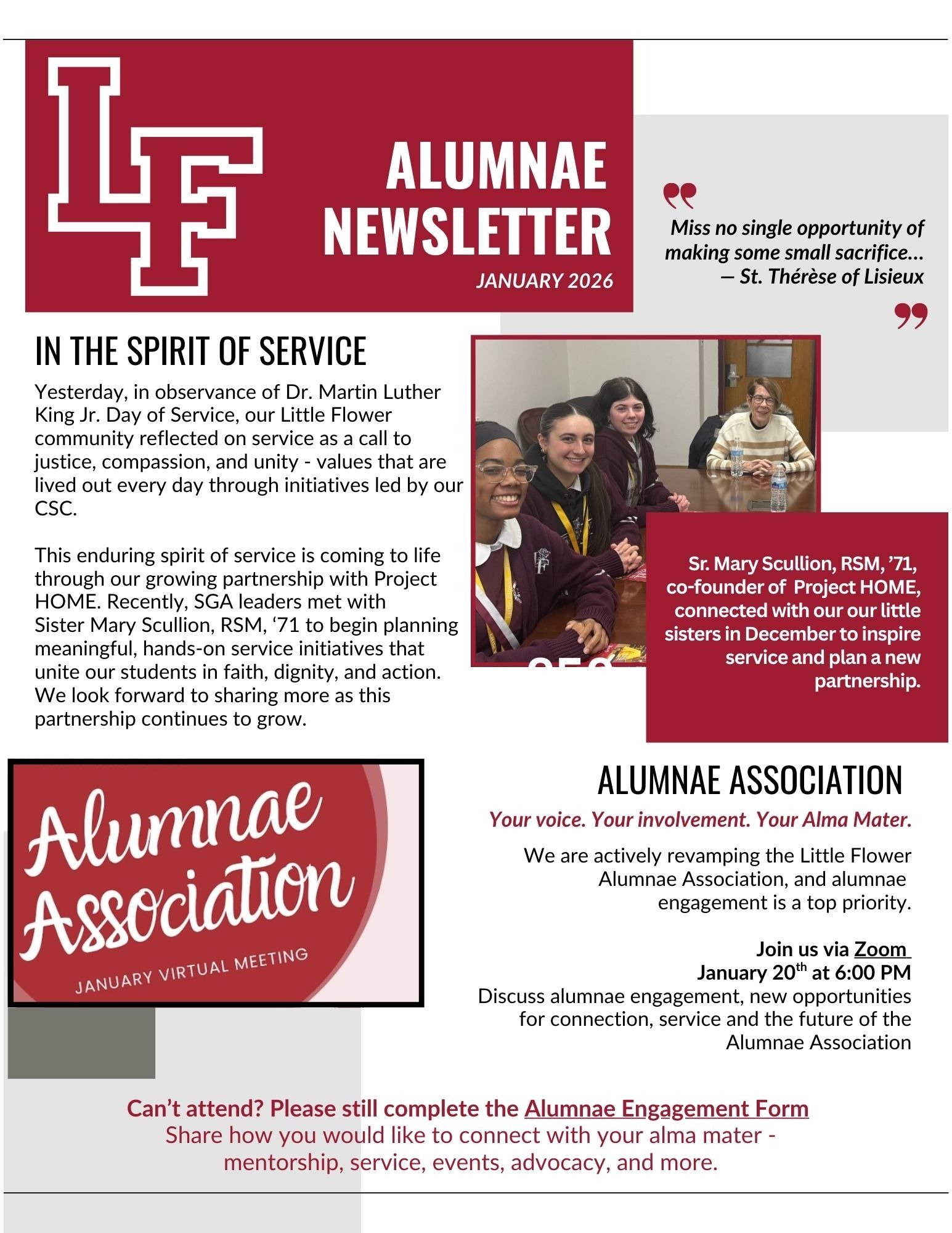 Little Flower Catholic High School for Girls is proud to share the Fall 2025 edition of The Sequel, our publication celebrating the heart of our community. This issue highlights the extraordinary legacy of alumnae like Bernadette L. Maguire ’53—an inspiring STEM trailblazer who rose through the ranks at General Electric—and honors the lifelong service of Sister Mary Scullion ’71, co-founder of Project HOME, whose mission continues to transform lives across Philadelphia.